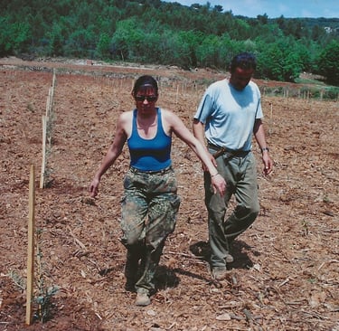 Nous voilà partis, en 2006, à réaliser une plantation de quelques 700 plants d’oliviers sur une parcelle de 2 hectares, en friche.